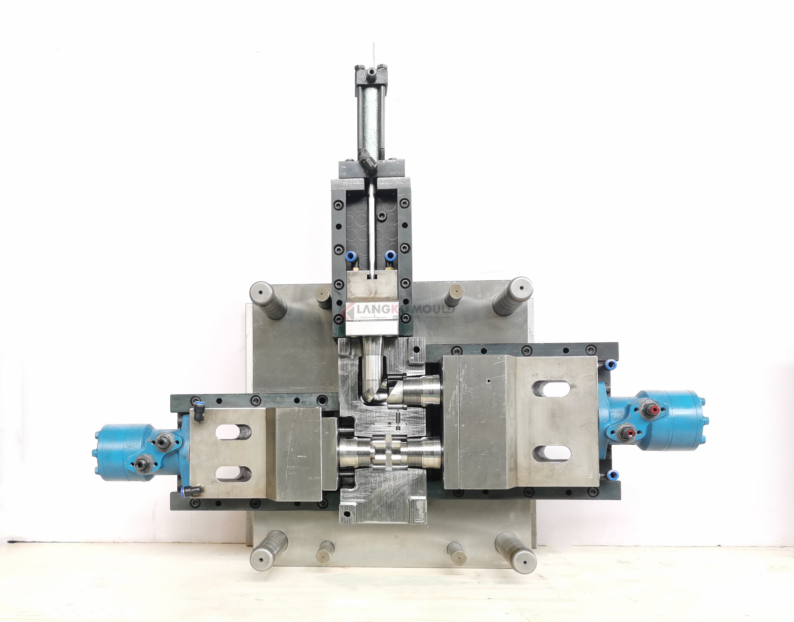 This one is unscrewing system with three oil cylinders, hot runner.