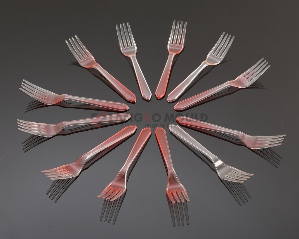 Our company is professional for the plastic injection fork mould, our engineer has more than 10 years experience in the field of plastic injection mould, le material of the plastic fork is PS, so we apply H13 as the plastic injection fork mould material, H13 hardness is HCR 48-52, plastic fork mould life could be 50,000 shots. We are good at customizing the plastic fork mould. If your fork have different design, we could also manufacture satisfied plastic fork mould according to the customer's requirement.