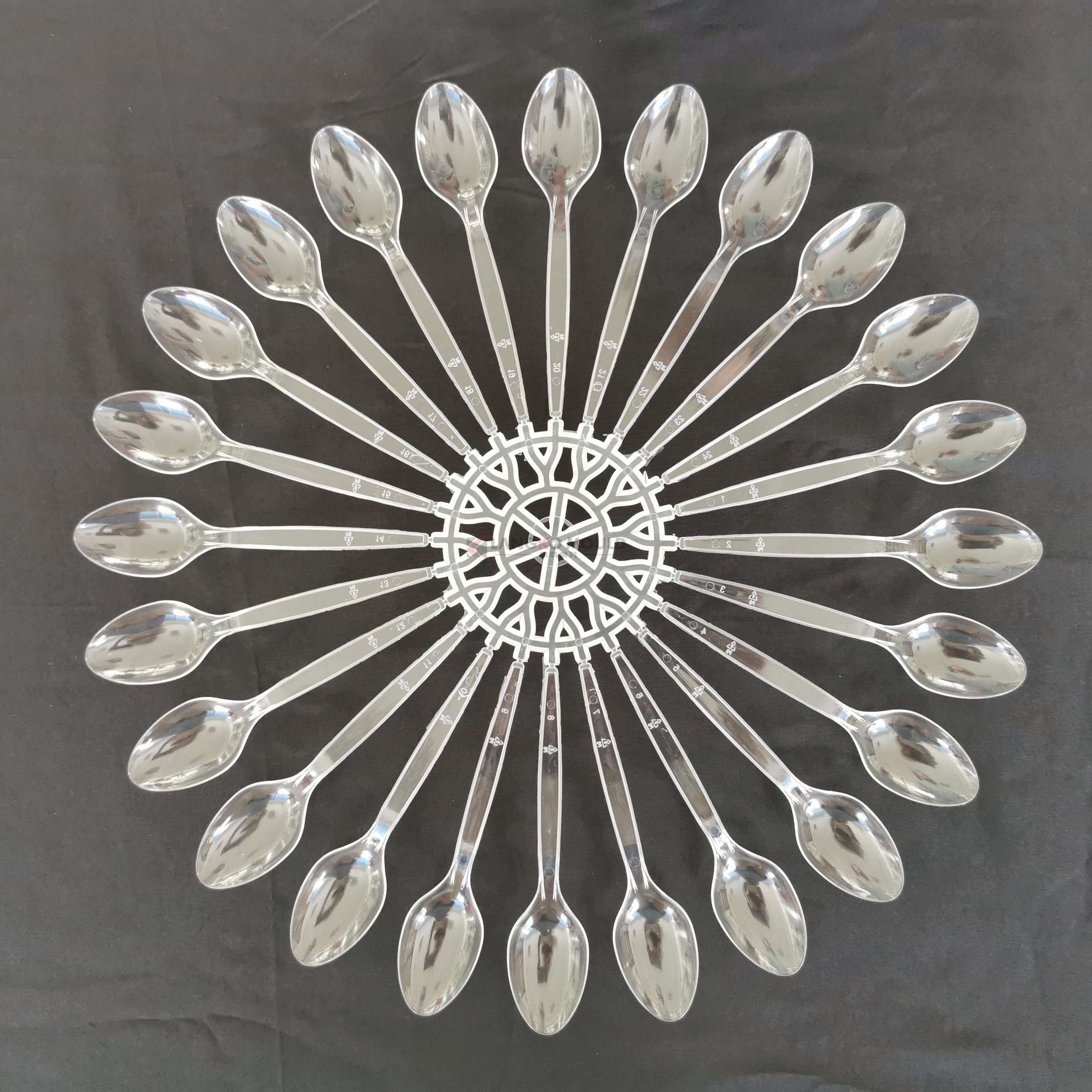 Our company is a plastic injection mould factory. We have manufactured many kinds of plastic injection spoon mould, please check this plastic spoon sample, it's from a 24-cavity plastic injection spoon mould. This plastic spoon material is PS, we apply H13 material as the plastic injection spoon mould material and 1 tip hot runner on the plastic injection spoon mould. According to our customers' requirements, we will offer the best suggestion and nice quality plastic injection spoon mould.
