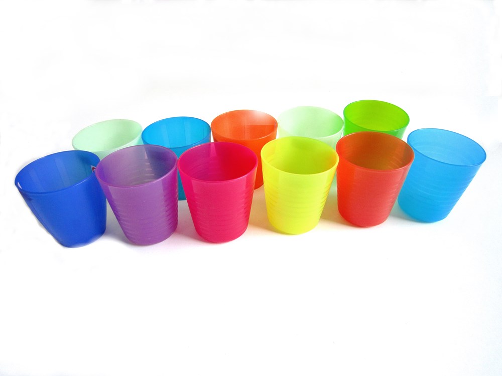 Finally, put cup mold on injection machine to produce cups. Each color we can adjust, then pour into machine material barrel. The mold master modify the machine technical data.